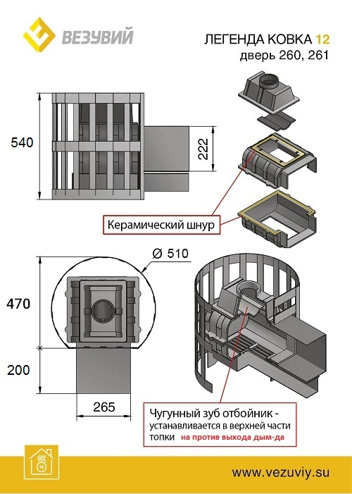 Печи для бани Везувий являются лидерами продаж среди чугунных печей для бани. Конструкция печи проста и надежна. Чугунная топка печи Везувий Легенда состоит из трех элементов, для герметичности в конструкции используется керамический термостойкий шнур.