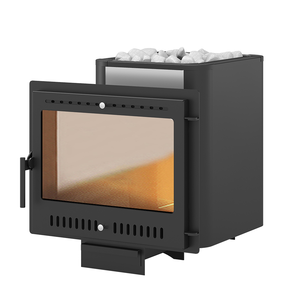 Объемная, вентилируемая каменка позволяющая максимально быстро нагреть камни с четырёх сторон в кратчайшие сроки, что значительно ускоряет нагревание воздуха в парилке за счёт образуемого им мощного конвекционного потока.
