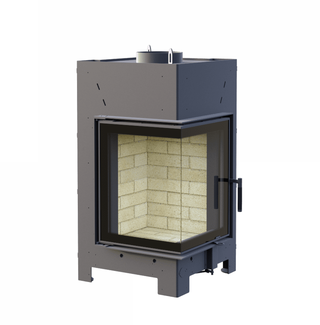 Форма стекла — в топке П2С 440 прямая г-образная дверка с боковым открыванием. Отсутствие стойки рамки между стеклами создает прекрасный вид на огонь.