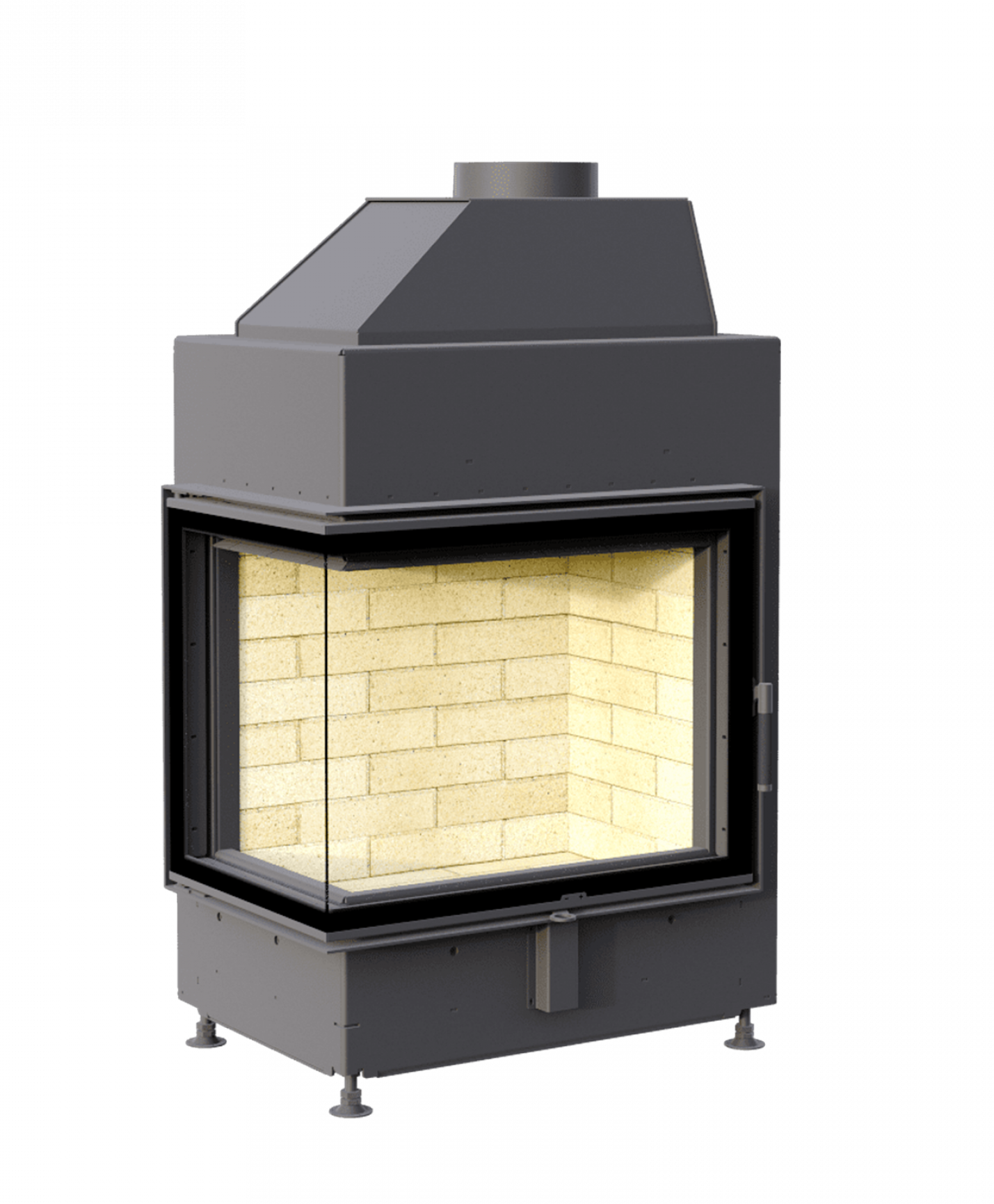 Форма стекла — в топке П2С 700 Левая (L) прямая г-образная дверка с боковым открыванием. Отсутствие стойки рамки между стеклами создает прекрасный вид на огонь.