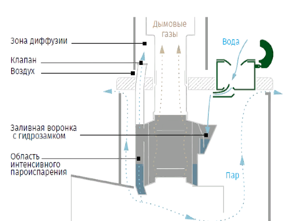 Выход пара у ПиФ «Профи» происходит не по каналам отвода пара, а через штуцер расположенный в верхней части к которому подсоединяется шланг, гофрированный из нержавеющей стали (в комплект не входит). Направление пара по данному шлангу определяет пользователь.