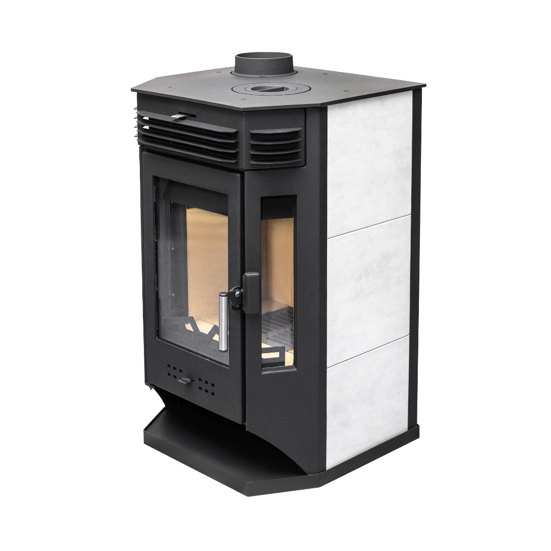 Благодаря номинальной мощности 9 кВт и высокому КПД не менее 75% печь способна эффективно отопить просторное помещение, быстро создавая комфортную температуру. Прочный стальной корпус и массивная 8-миллиметровая верхняя панель гарантируют долговечность и устойчивость к высоким температурам.