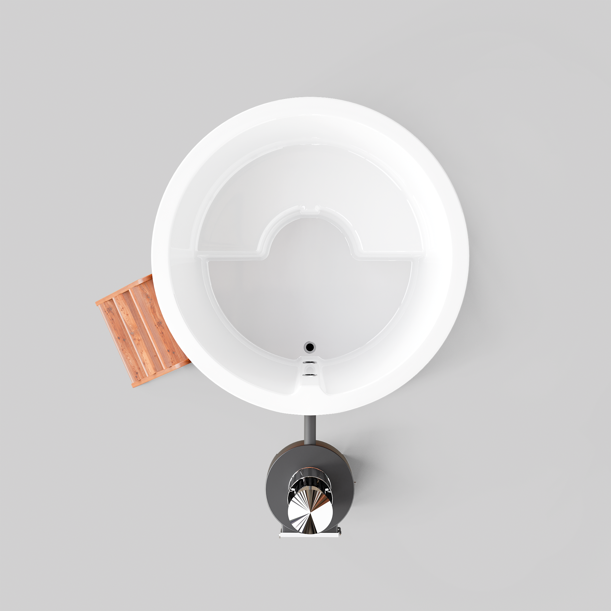 Модель оснащена внешней печью POLARSPA мощностью 40кВт, которая за 1,5-2 часа нагревает воду до комфортной температуры. Печь находится на безопасном расстоянии от купели – о нее невозможно обжечься.