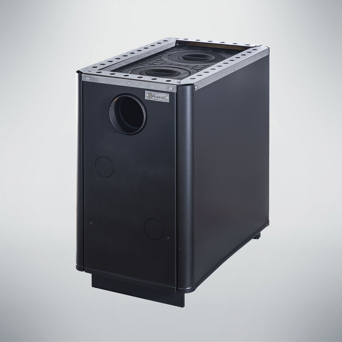 Печь снабжена чугунными конфорками для приготовления пищи. Регулировка интенсивности горения, осуществляется за счет открытия/закрытия зольного ящика, тем самым получая разные режимы теплоотдачи. Колено 90° входит в комплектацию к печи. Топка печи Варвара Уют изготовлена из стали 6 мм, наружный кожух - металлический, препятствует жесткому излучению и позволяет быстро прогреть помещение за счет конвекции. Чугунная дверка проста и надежна в эксплуатации.