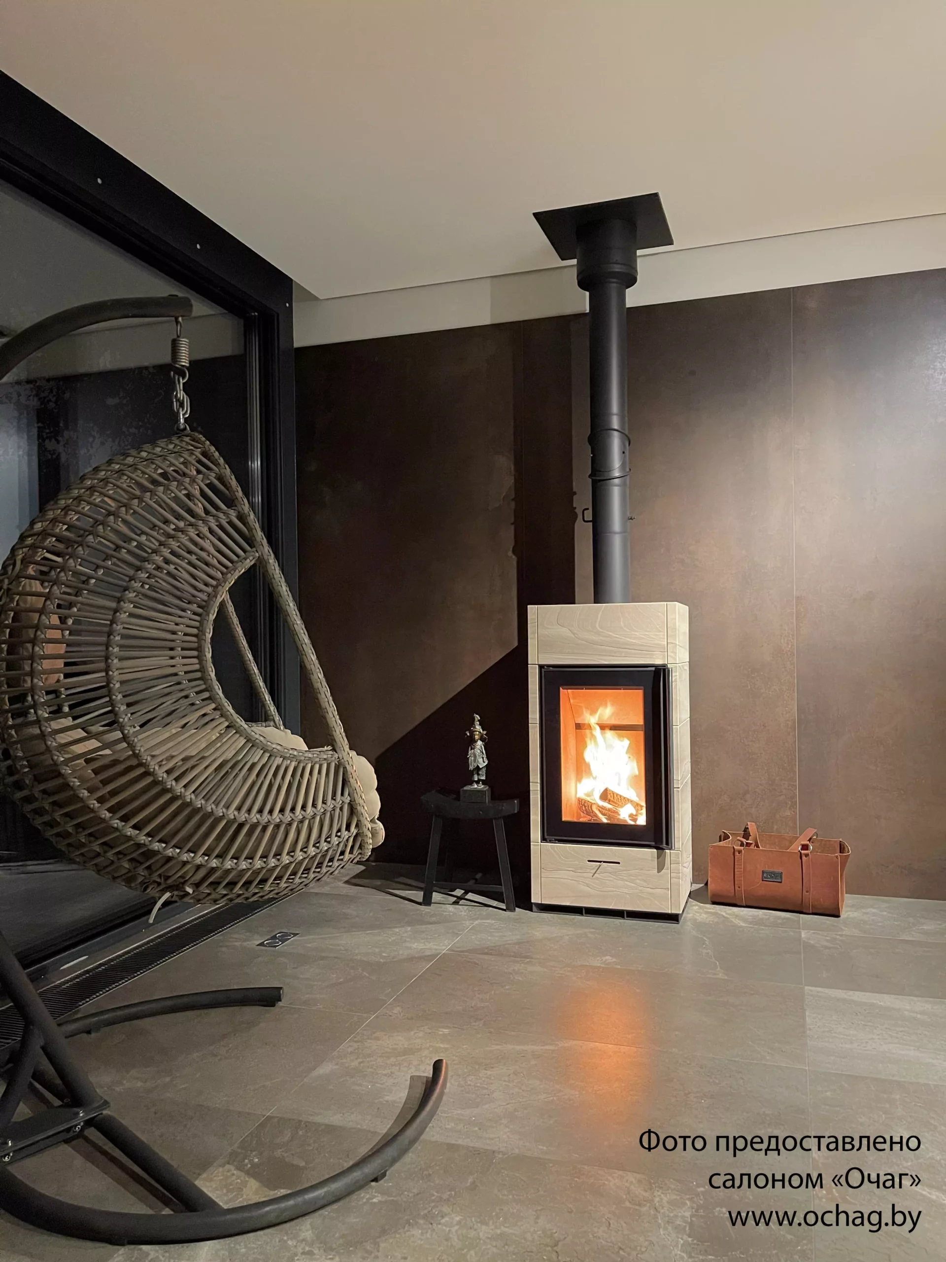 Под печь необходимо предусмотреть негорючее основание. Рекомендуем использовать листы под печь черного цвета.