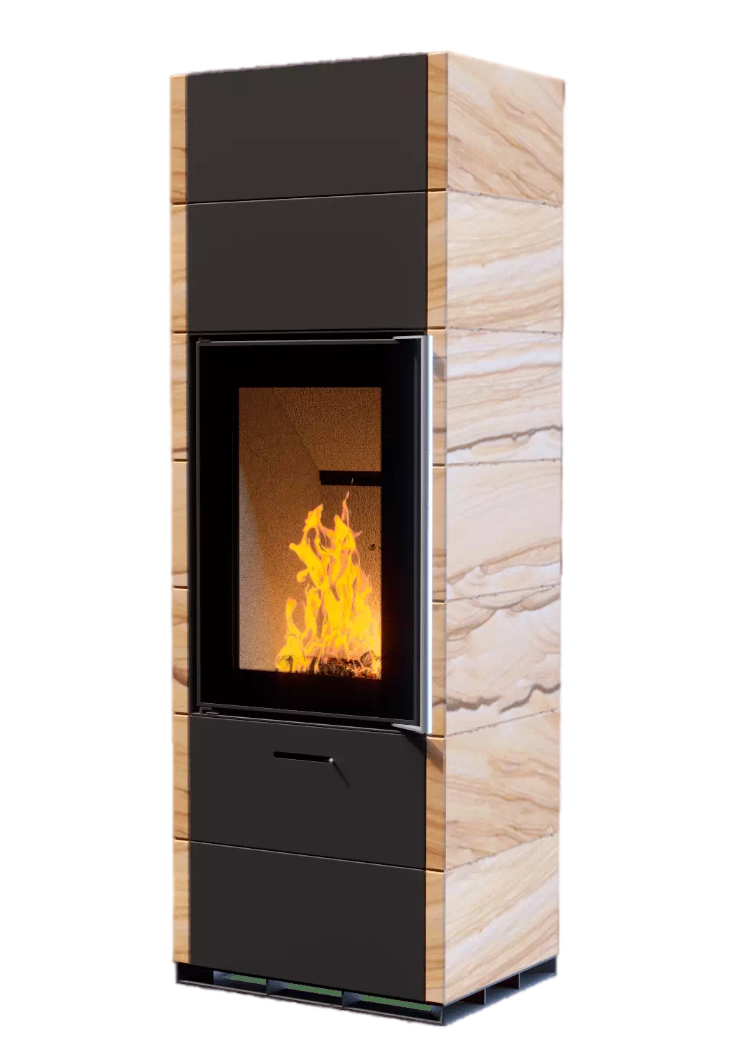 Представляем Вашему вниманию новинку - серию топок КИВИ. Печи облицованы натуральным камнем Песчаник толщиной 40мм, который обладает невероятными теплоаккумулирующими свойствами. По своей теплопроводности и теплоёмкости этот камень в два с половиной раза превосходит привычный кирпич. Песчаник очень эффективно нагревается и долго держит тепло, постепенно передавая его в помещение.