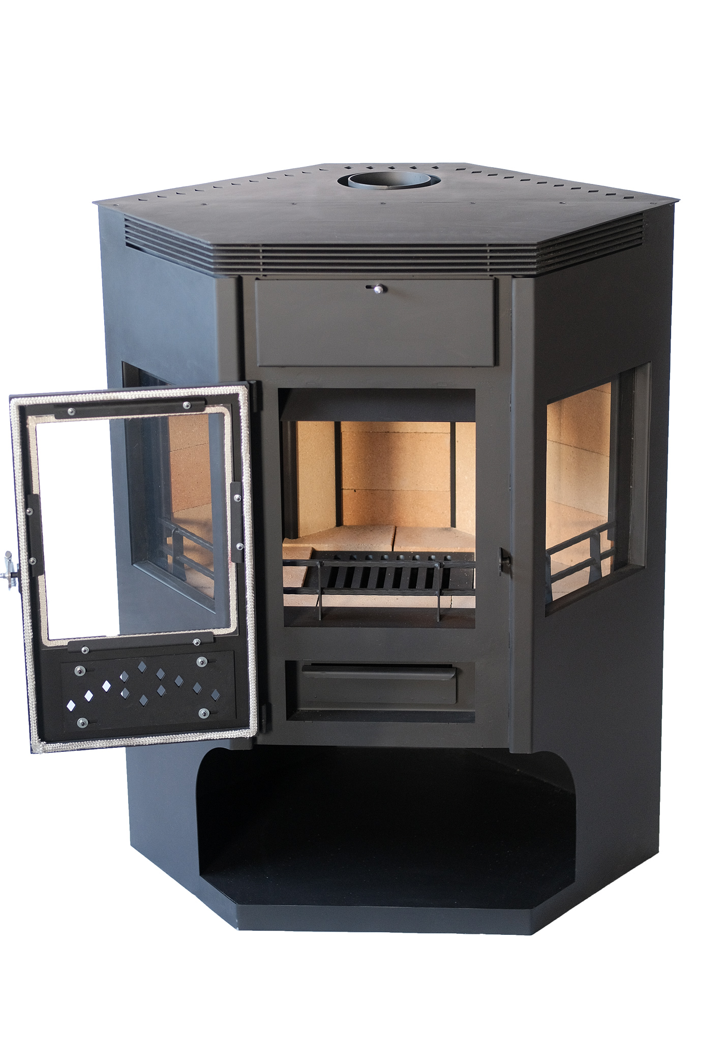 Под печь необходимо предусмотреть негорючее основание. Рекомендуем использовать листы под печь черного цвета.