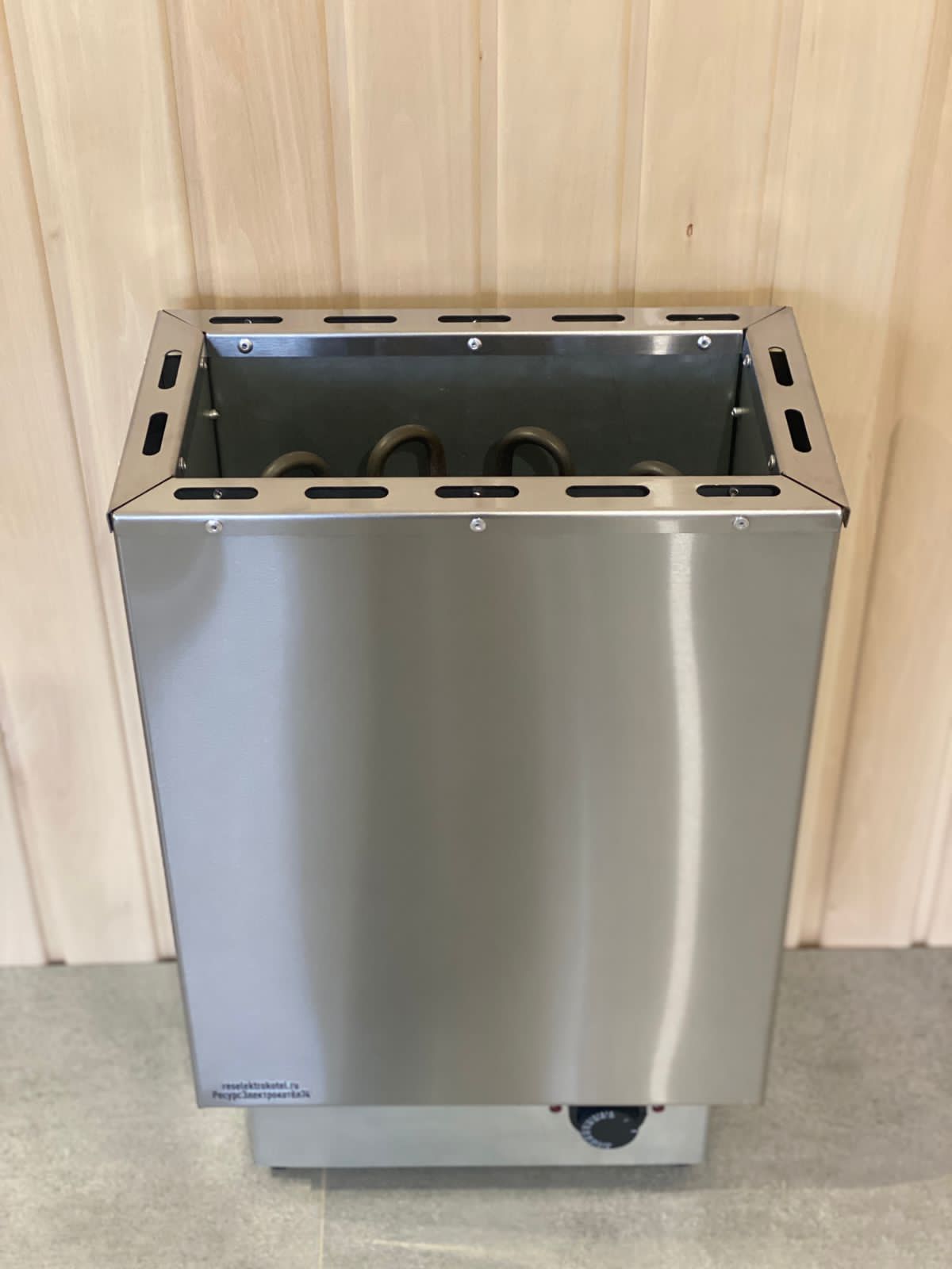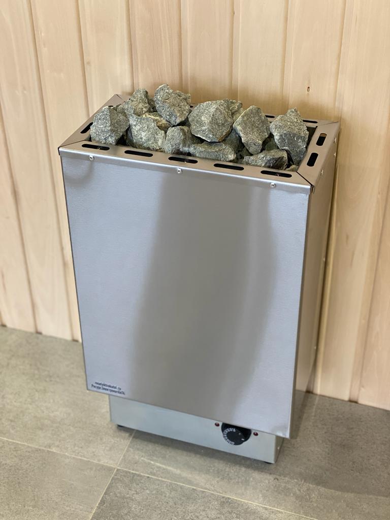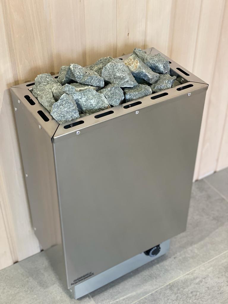 Корпус из нержавеющей стали. Листовой металл. Регулируемые опоры до 20 мм. Материал изготовления ТЭНов (нагревательных элементов) - нержавеющая сталь, средний срок работы тэнов - 10 000 часов, расположенных вертикально по всей камере, обкладываются вокруг камнем и сверху создается "горка" из камней.