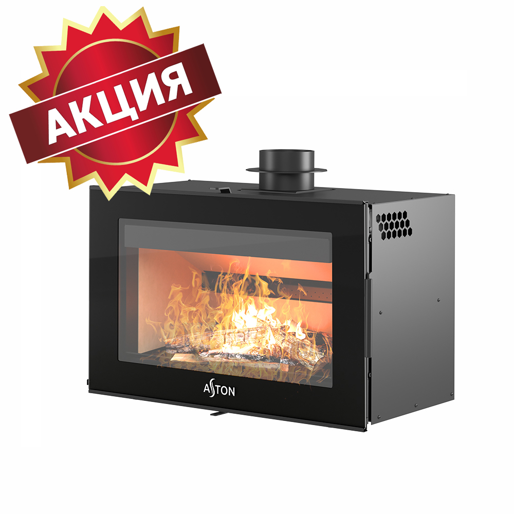 Стальная каминная топка АСТОН, рассчитанная на подовое горение дров.