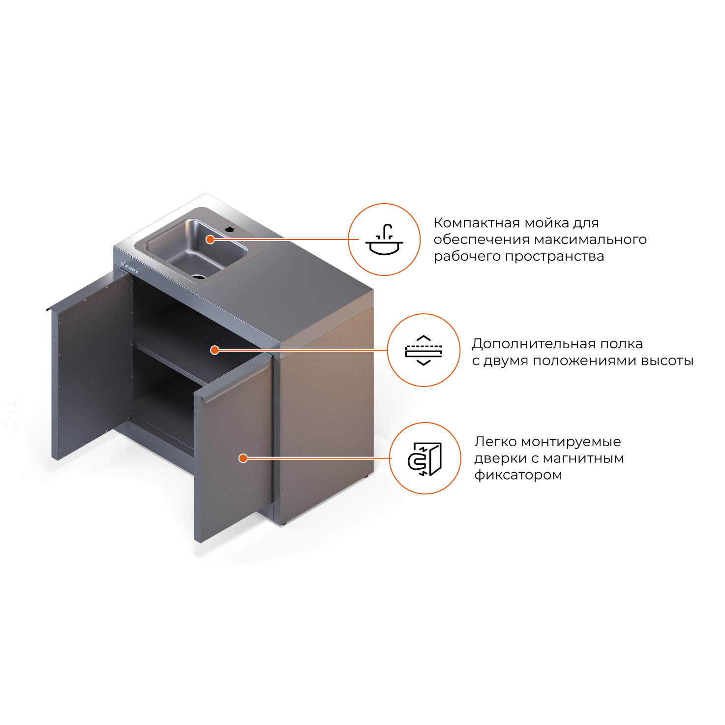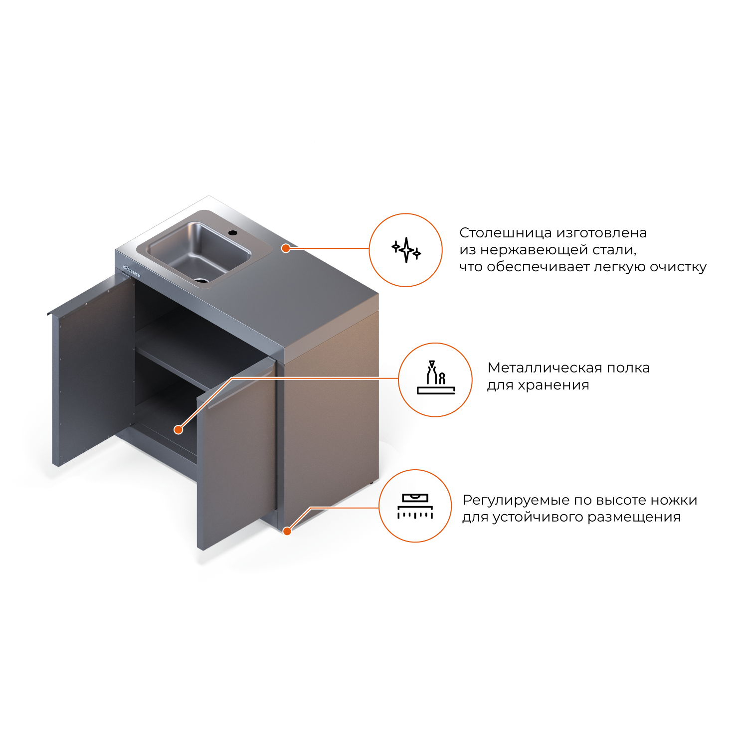 Тумба с мойкой Gratar Expert ETU 900M превращает зону барбекю в настоящую кухню.