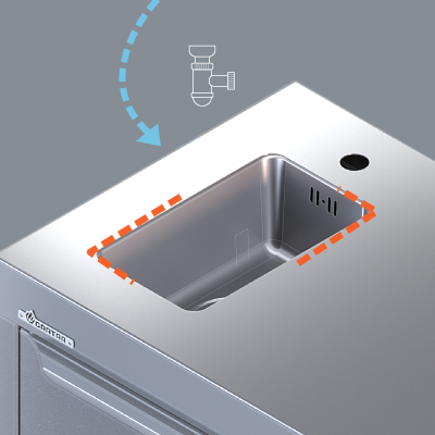 Встроенная мойка выполнена из нержавеющей стали. С шумоподавлением и сифоном