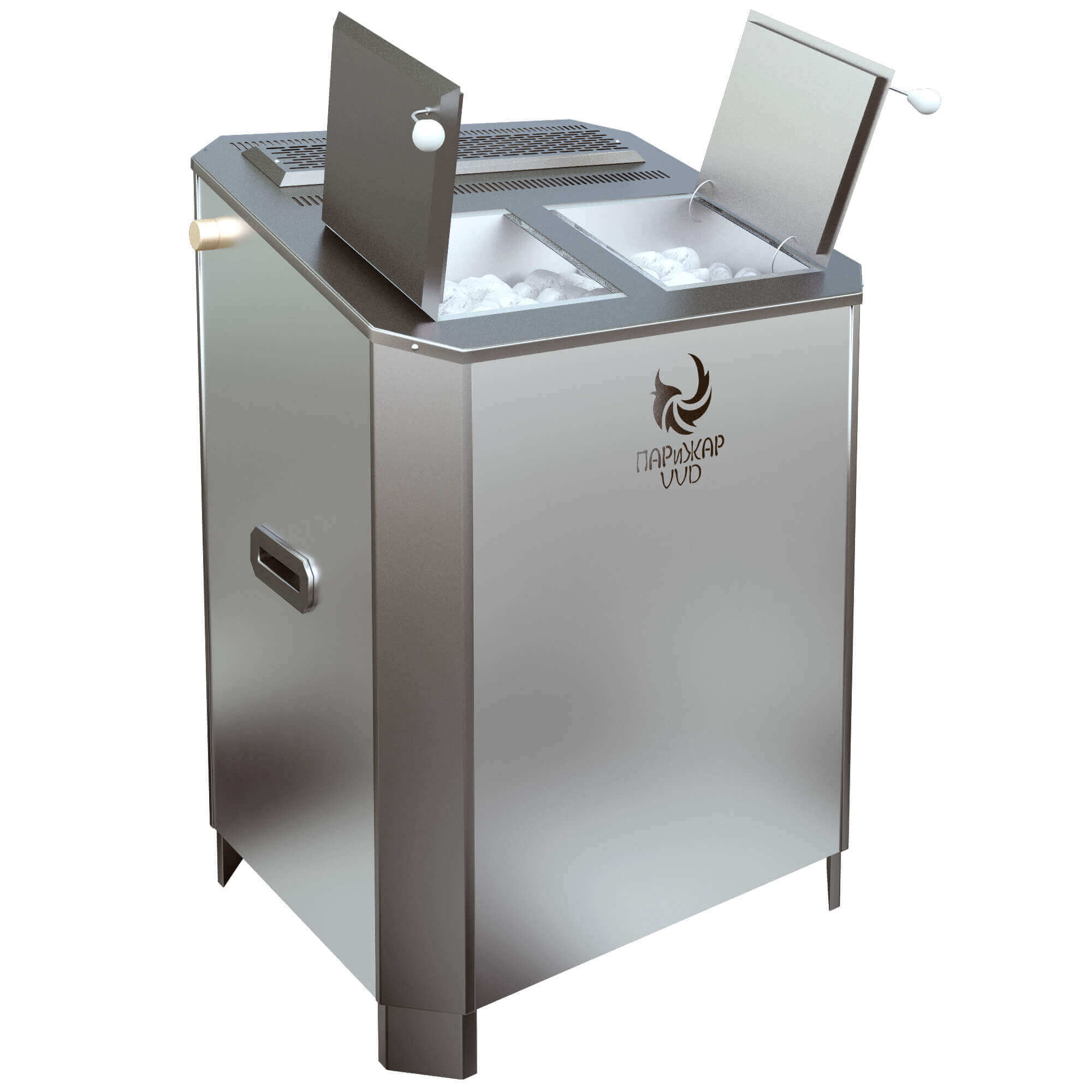 Печь ПАРиЖАР 10 кВт предназначена для парильных помещений от 8 до 13 м³, изготавливается из нержавеющей стали. Рекомендуется подключать к центральному водоснабжению, при его отсутствии допускается подключение к выносному баку.